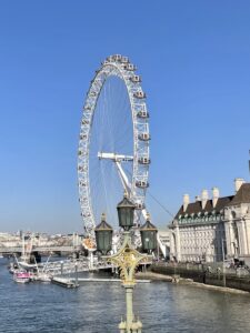 Unser nächster Stop mit dem Hop on/hop off bringt uns zurück nach old London zu DEM Wahrzeichen der Stadt: Gong, Gong, Gong, Big Ben. Genau genommen der Queen Elisabeth II Tower. Nur die Glocke heißt Big Ben. Tip Top gepflegt und erst 2020 fertig restauriert erstrahlt er vor uns in seiner ganzen Pracht. Das Wetter meint es für englische Verhältnisse ausnahmsweise gut mit uns und taucht den Turm in warmes, gold schimmerndes Sonnenlicht. Was ein Anblick. Das angrenzende „Houses of Parliament“ (Parlamentsgebäude), scharf von schwer bewaffneter Polizei bewacht ist das schmucke Anhängsel am Queen Tower, unbedingt sehenswert. Da wir nur einen Tag in London haben, belassen wir es bei einer Besichtigung von aussen. Wir schlendern vorbei an Westminster Abbey (Westminster Abtei), die Kirche Englands. Sie gehört keiner Kirche an sondern ist eine Eigenkirche der britischen Monarchie. Traditionsgemäß wurden/werden hier die Könige und Königinnen Englands gekrönt. Aus Zeitmangel besichtigen wir auch sie nur von aussen. Einen kurzen Blick werfen wir noch auf das „London Eye“ (Auge von London). Im Jahr 2000 fertiggestellt sollte es eigentlich nur fünf Jahre in Betrieb bleiben. Auf Grund des großen Erfolges wurde das aber wieder verworfen und so dreht es noch heute tagtäglich seine Besucher einmal um seine Achse. Schön ist es nicht anzusehen, aber irgendwie doch ein Teil Londons.