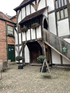 Wir erreichen York am zeitigen Nachmittag und machen uns auf den Weg vom Bahnhof zum von Hanna gebuchten Airbnb. Zwischendurch machen wir einen Stop in einem Burgerrestaurant. Keine Offenbarung aber satt. Hanna hat uns ein erstklassiges Haus mit Espressomaschine gebucht. Die wird auch sofort nach unserer Ankunft getestet und als gut befunden. Lecker. Nach einer mittleren Verschnaufpause unternehmen wir einen ersten Spaziergang in die Stadt. Freunde, wir sind in Limburg a.d. Lahn oder in Quedlinburg. Altes Fachwerk soweit das Auge reicht, kleine Gässchen, schiefe Straßen, ein Hauch des Mittelalters weht um unsere Nase. Die Jagd nach dem Croissant geht in die dritte Runde.